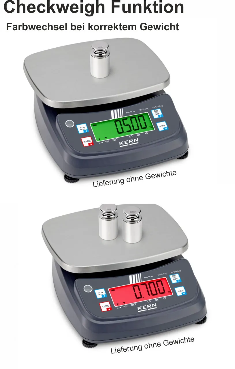 Tischwaage KERN FPB 3K-3M für eichpflichtige Anwendungen. Eichung optional. Dieses Modell wiegt bis 3kg mit einer Ablesbarkeit von 1g (e=1g). Eichklasse II.