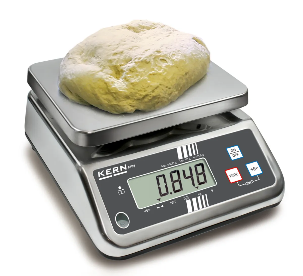 Die FFN 15K5IPM von Kern und Sohn hat einen Wägebereich bis 15 kg und eine Ablesbarkeit (d) von 5 g (e= 5 g).